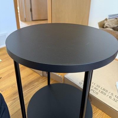 I love this end table. It has a metal base with back wood base. It doesn’t feel cheap, it’s nice and heavy.