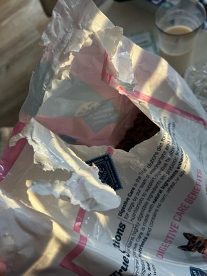 [This review was collected as part of a promotion.] I never have problems with my dogs getting into things they aren’t supposed to, but within 24 hours of buying this food, my dogs had ripped a hole in the bag. They love this kibble and think it’s delicious. They haven’t had any trouble switching to this from their old kibble.