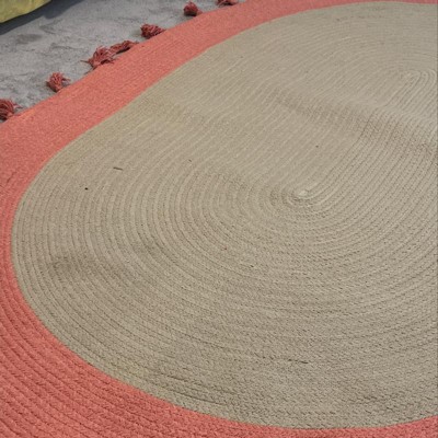 Bring some natural-looking flair to your kiddo's room with the Braided Area Rug Border from Pillowfort™. This braided oval rug is made from 100% cotton with a flat-pile construction, and it features a brown center with a green border and matching tassel framing the periphery for a pop of contrast and a playful look. Easy to blend with any decor scheme and many color palettes, this cotton accent rug makes a charming addition to their decor no matter where you place it in their space.