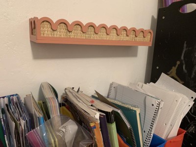 One of my favorite new items from pillowfort! Love the pink and rattan combo. Very sturdy and so pretty! It’s a fairly good length for a shelf. My daughter and I love it! I can’t for the other matching items!