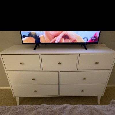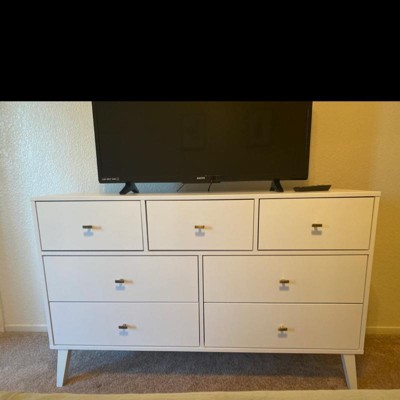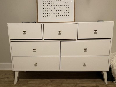 Prepac 7 Drawer Milo Mid-Century Modern Dresser White: Laminated, Metal Glides, MDF Composite