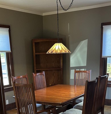 Perfect for over my dining room table. Vintage amber 25w's complement the lamp colors. Exactly like description and well made.