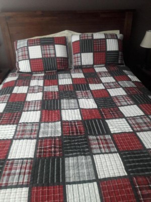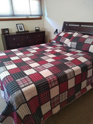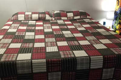 Woolrich Full/Queen Tulsa Oversized Plaid Print Quilt Set Red/Gray: Bedding, Pre Washed, 3 Piece Set