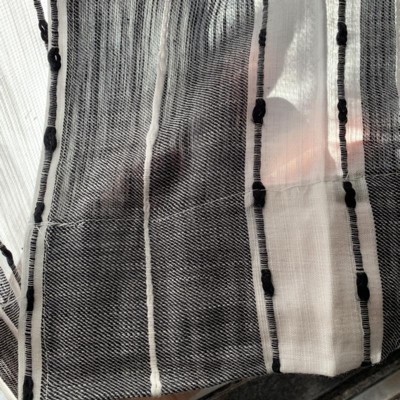 I love the look of this window treatment. I wanted to find a black and white window covering that will inspire how I will decorate the rest of the kitchen. The fabric is a simple cotton that I can remove, wash, and reinstall. I don’t have blinds on that window so I needed the fabric to obscure view and it does it well. It was also delivered very fast. I’m so pleased that it fits the window from top to bottom without having to make any adjustments.