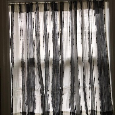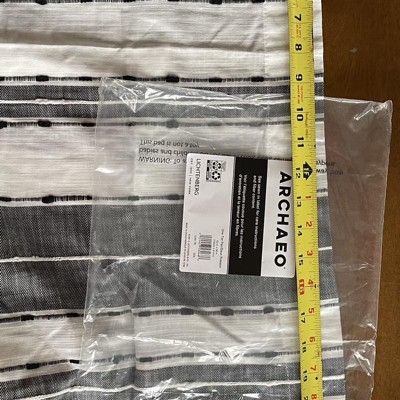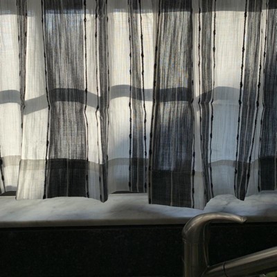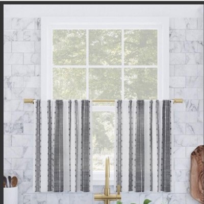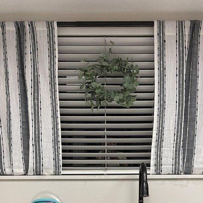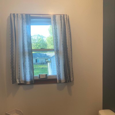 Infuse southwestern chic into any room of your home with the Slub Texture Stripe Cotton Cafe Curtain Pair from Archaeo. Featuring yarn-dyed vertical stripes, this slub textured semi-sheer cotton fabric gently filters light while enhancing privacy. Ideal for kitchens, bathrooms, or small windows, the pole top rod pocket design allows for simple slide-through installation on curtain rods up to 1.5” in diameter. Sold as a set of two tiers. Coordinating valances or swag pairs are sold separately. Measure carefully before selecting your desired size. Rod not included. Hand wash using cold water. Use non-chlorine bleach when needed.