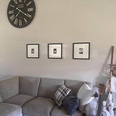 Affordable photo gallery wall though recommend using a laser to hang them level since the hardware on the back is not uniform or levels