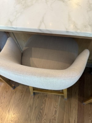 We recently did an entire kitchen remodel and I was looking for two bar stools. I have a few other items made by Threshold so I decided to purchase two of these stools. I love them but I HATE that the fabric looks terrible after two months.