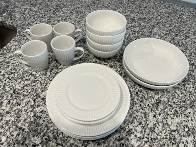 18pc Porcelain Elle Dinnerware Set White - Elama: Stoneware Dish Set, Service for 4, Dishwasher & Microwave Safe