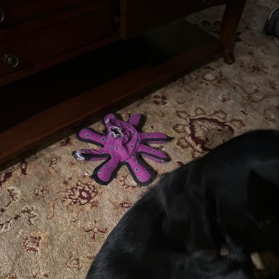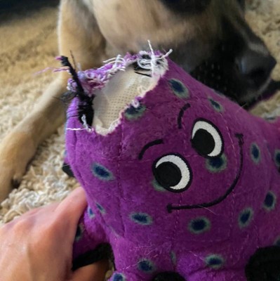My Dogs Love there new purple Octopus dog toy! Perfect size toy for any size dogs, sturdy material with squeaky arms that make cute noises. Made with very heavy duty material along with well stitching. Keeps my dogs occupied for hours, Lots of fun for my dogs. I really like that it’s machine washable and that it floats in water. I have several Tuffy brand toys for my dogs, long lasting toys... love it!