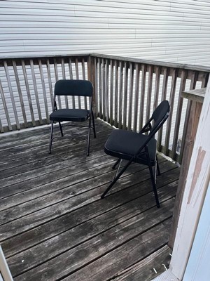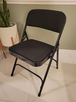[This review was collected as part of a promotion.] These are great to have on hand when we have card night or friends over because they are very comfortable to sit in for a long time. They have cushiony padding for seats and they are sturdy. We played Monopoly with our friends last weekend and they were still comfortable after several hours sitting in these chairs. They are good quality and fold up to store easily.