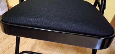 [This review was collected as part of a promotion.] The chairs are very comfortable, cushion is soft. Folds easily. Heavy duty and sturdy. Glad to have the extra seating especially with the holidays.