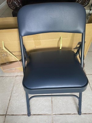 [This review was collected as part of a promotion.] I recently got my hands on the Bernadine vinyl folding chairs, and I must say, I’m impressed. These chairs exude quality, with a sturdy build that feels like it can withstand a lot of use. The comfort level is excellent, making them perfect for long gatherings or events. I particularly like the design, featuring a charcoal-blue frame and dark midnight blue vinyl. This color combination gives them a sleek and modern look that fits well in any setting. One of the standout features of these chairs is their versatility. Whether you need extra seating for a party, outdoor event, or just everyday use, these chairs are up to the task. Overall, I’m very pleased with the Bernadine vinyl folding chairs. They combine quality, comfort, and style, making them a great addition to any home or event space. Highly recommended!
