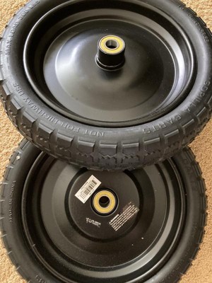 [This review was collected as part of a promotion.] We have a gorilla cart that we use for everything around the yard. It's had two flats since the winter, which we just kind of have been ignoring. It was getting harder to maneuver, but the tires are designed in a way they they never went flat-flat. Well, I finally gave in and popped these guys on and my cart is as good as new. 10/10, would replace again