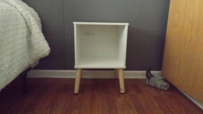 This Nightstand is so simple and very sleek looking. It takes less than 5 minutes to put together and was super simple to follow the directions. I also like that it has some weight to it so it's not going to fall over. The stark white color of the shelf let's whatever you put on it stand out more. I love this my new shelf!!!