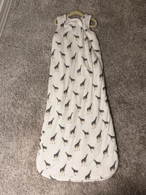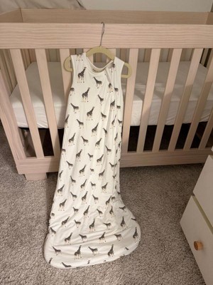 [This review was collected as part of a promotion.] Had to snag a giraffe sleep sack before it’s gone forever. Our baby nursery is an old world safari theme and giraffe has been our OG print for the crib!