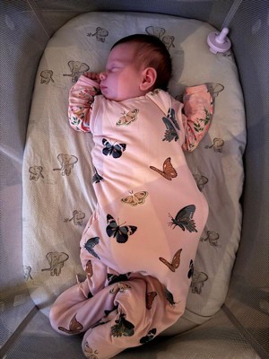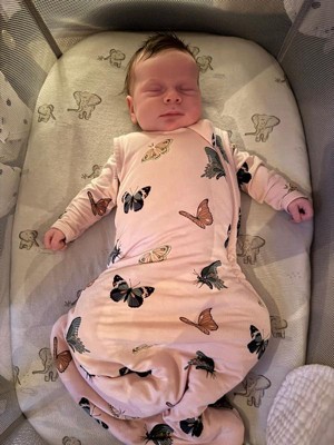 [This review was collected as part of a promotion.] The butterfly pattern on the bag is beautiful and matches her footed sleeper underneath. The product is amazing. The fabric is beautiful.