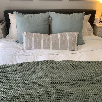 These pillows are great - so soft and beautiful! My only issue is that they did not match the sage green blanket, which is also from Casaluna (see pic). They’re more of a blue-green color. I bought them for our bed but we’ll be using them elsewhere since they don’t go with the other sage green accents we have.