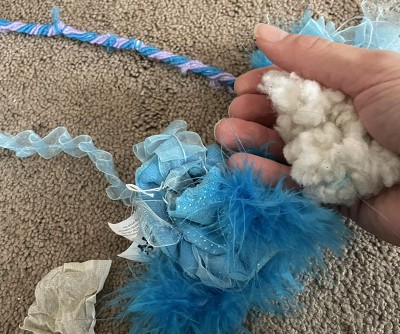 Super cute cat toy, but for whatever reason, my cat does not like the feathered part of the toy. She really just likes the rouched ribbon bit.