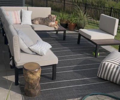 Got this patio set for my back patio. Everyone loves it and thinks it was so expensive! It's modular, so you can set it up however you want. Very comfy and stylish. Totally recommend!