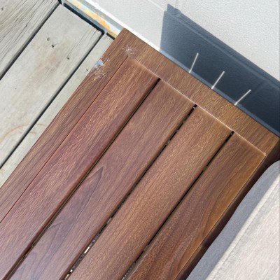 This piece has the clean, modern, and natural look I wanted! The metal tops look like wood without the hassle. Very easy to put together. My daughter and I did it in an hour or so! It's easy to move and customize in my small backyard.