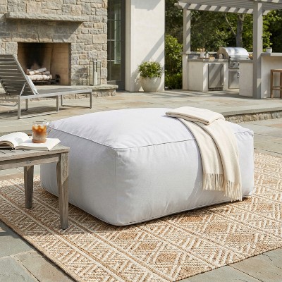 Magnolia Rattan Ottoman - White/Blue - Lagoon: Weather-Resistant Patio Footrest, No Assembly Required