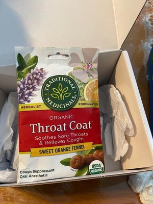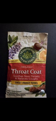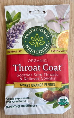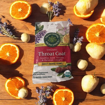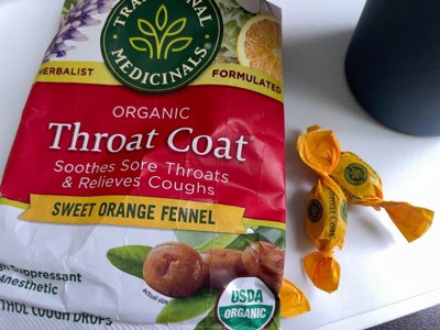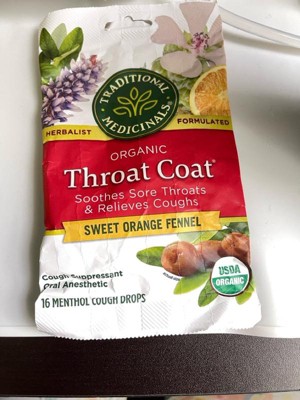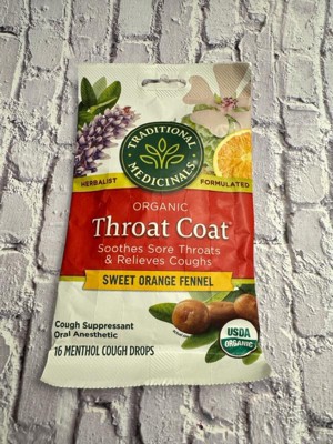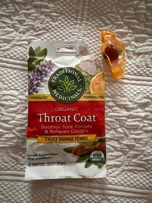 Traditional Medicinals Throat Coat Sweet Orange Fennel Lozenges - 16ct: Menthol Cold Relief