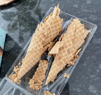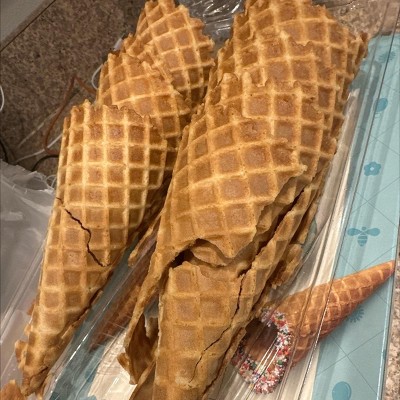 Not a single cone in this package was intact. All 12 were either shattered or broken. So many crumbs they were even in the bottom of the box despite the cones being sealed in a separate bag. They continued to fall apart as I tried to pick them up. Flavor is fine but waste of money given they’re not usable. I would not buy these