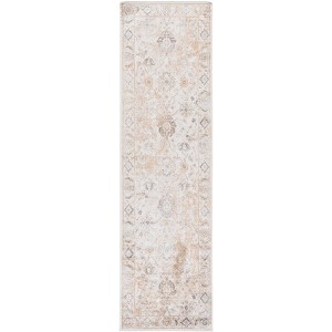 Elevate your home with the timeless elegance of our Ivory/Beige Runner Area Rug. Expertly crafted in Belgium, this transitional style rug measures 2'-2" X 8', perfect for long hallways or as an accent piece in any room. Its power-loomed construction, made of a luxurious blend of 52% viscose, 31% polyester, and 17% cotton, offers durability while maintaining a soft touch and low profile with a height of just 1/8".
