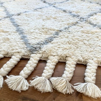 I purchased this rug for a little nook in our house. I ordered the blue/ivory in 5x8. It’s definitely a shag style rug and the tassels are thick. It arrived ahead of schedule, which was a nice surprise, and there was no chemical odor. It was a little wrinkled when we first unrolled it, but those have mostly settled out, and it’s so plush, it didn’t really matter anyway. So far we love it! It is definitely true ivory and a lovely, soft blue.