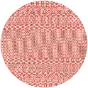 Introducing our exquisite Round Area Rug, a timeless addition to any indoor or outdoor living space. Measuring 6'-7" x 6'-7", this perfectly circular rug brings warmth and balance with its BEIGE / RED color palette, blending seamlessly into various decor styles.