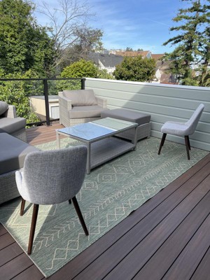 [This review was collected as part of a promotion.] I received this rug for an Instagram post and absolute love how it turned out! It really pulled our rooftop deck together, while adding cozy vibes for summer nights. The rooftop deck originally had a generic look, but the outdoor rug really brightened up the space. Plus it matches our rooftop furniture so well!