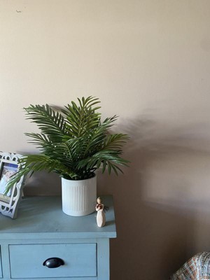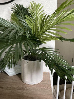 19" x 18" Artificial Phoenix Palm Plant in Ceramic Pot White - LCG Florals: Indoor Decor, Polyester Foliage
