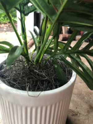 I like the idea of having an artificial plant to bring some “life” into the darker, inhospitable corners of my house. On first glance, this plant is a good size with a wide coverage and a simple, classic white pot. It’s nice that it comes all together with the plant, mulch, and pot. The leaves are varied in color to give depth and a more realistic plant feel, though I personally found them more artificial looking up close, as did the plastic-looking stems. For me, it serves the purpose to be in a corner of my basement hangout space, but I wouldn’t put it in a well-lit living space.