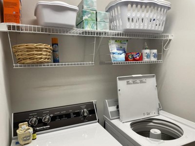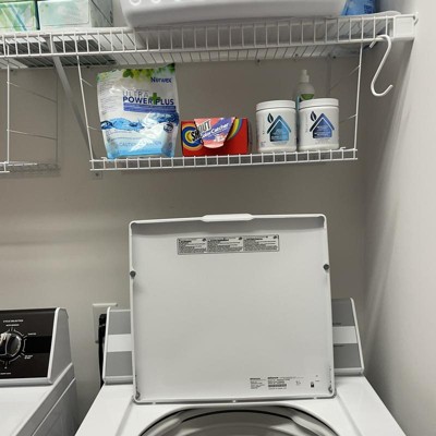 [This review was collected as part of a promotion.] One can never have too much storage space. This wire shelf is perfect in the garage laundry or laundry room. It is large enough to hold many products. I love it.