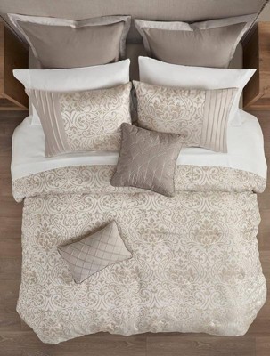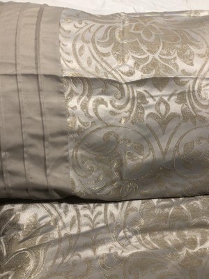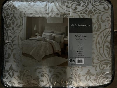 Queen Grace 12pc Jacquard Complete Bed Set Khaki: Madison Park, Polyester, Damask Pattern, Machine Washable