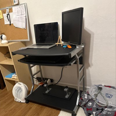 - Features a sliding keyboard shelf and mouse surface