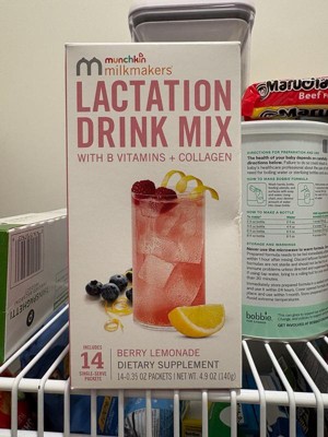 Munchkin Milkmakers Lactation Drink Mix Supplement with B Vitamins & Collagen - Berry Lemonade - 14ct/4.9oz
