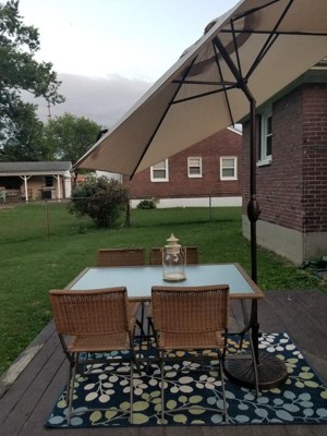 This is a really nice-looking indoor outdoor rug. It's prettier in real life than pictured on the website. I purchased the 5 ft. x 7 ft. rug. The colors will work well with our new house color as well as our outdoor furniture. It seems to be nice quality, as well. I'm very happy with my Nourison rug purchase and would recommend this rug to others.
