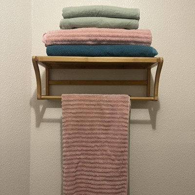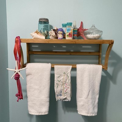 Bamboo Wall Mounting Shelf with Towel Bar Brown - Organize It All