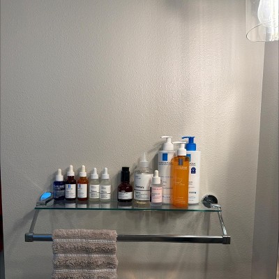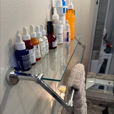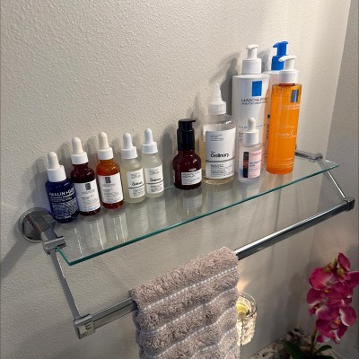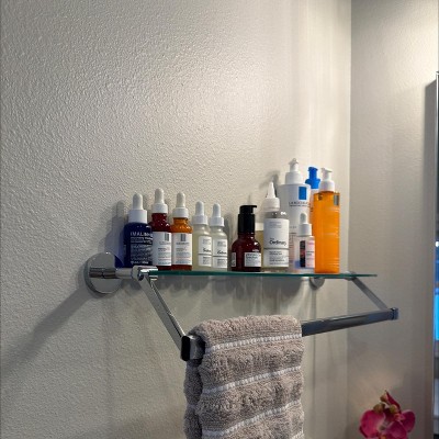 Mounted Glass Shelf with Towel Bar Chrome - Organize It All: Wall-Mounted Storage, Metal Frame, No Tools Assembly