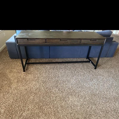- Provides plenty of space for office work, studying, writing or gamingFeatures: two notched handle side drawers with ball bearing drawer glides and one center flip down drawer/keyboard trayModern Industrial style includes metal frame and legs in Graphite Gray