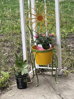 [This review was collected as part of a promotion.] A Beautiful freestanding yellow daisy flower design planter. It adds a stylish accent to you outdoor decor. Add you favorite potted flowers in contrasting colors to add elegance and brighten up your favorite outdoor spot. The stand keeps your planter/potted flowers off the ground and easy to move around with ease. Even if you don't have a green thumb this will make it look like you are. Group together or alone. Extremely durable as an accent piece or a focal point in your garden, patio or deck! These will make your outdoor space stand out. Great quality material to use year after year.