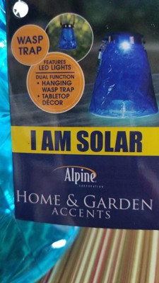 [This review was collected as part of a promotion.] I chose a set of Alpine Corporation 7" Tall Solar Blue LED Wasp Traps because I was tired of looking at bright yellow and cheap plastic conventional traps. These Alpine traps are made of beautiful bluish / teal glass with a hemp style hanging rope that look great in the day time and light up nicely at night. They are easy to empty and do not have any harmful chemicals to deal with. These traps are a great addition to my backyard!