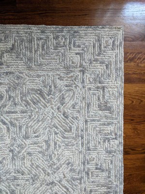We just love our new indoor Nourison rug (Vail VA104) we ordered from Target! The 5’3” x 7’3” was the perfect size to fill the space upon entering our bedroom. We chose the grey one and it matched our new bedroom color scheme of grey and white so well! The design is pleasing to the eye and the tufted wool feels so comfortable under our feet! It is very well made and we highly recommend purchasing this outstanding Nourisan rug from Target!