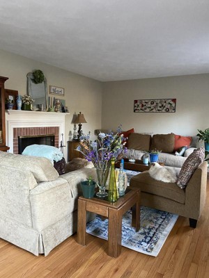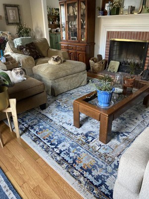 It took me months to figure out a what type of area rug to buy. So many color and texture options. With Spring 2022 here I needed a change in our living area. We went with this blue faded token rug. It’s got lots of interesting color yet it compliments my room. First two in daylight second at night.