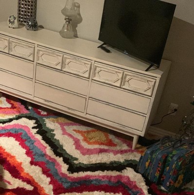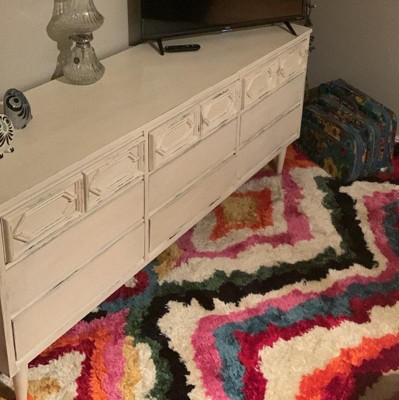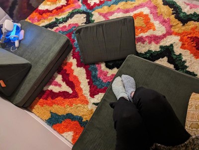 Love this rug! Feels so soft on your feet and love the colors. It does shed a bit, but it doesn’t bother me! Do not hesitate to purchase if you’re looking for a fun rug!