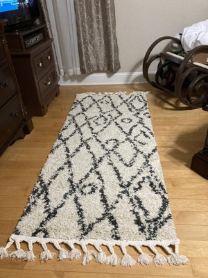 Modern, edgy style combined with traditional Moroccan accents make this rug shine. This rug boasts a cozy shag pile perfect for your bedroom or low traffic living room