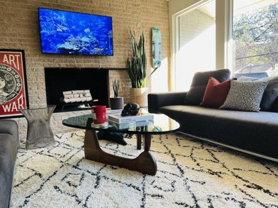 Guests are generally pleased with this rug, highlighting its beautiful design, softness, and value for the price. The rug's aesthetic appeal and ability to tie a room together are frequently mentioned. Some guests noted issues with the rug not laying flat initially and a slight odor upon arrival, but these concerns typically resolved over time.