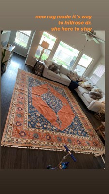 This is a great-feeling rug for the price. Very soft and great pattern. Only complaint is the orange and blue aren't as bold as pictured. Blue is much lighter, and orange comes across as a little more peach-tone.