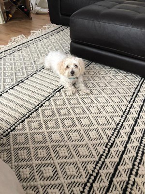 I absolutely love this rug and get so many compliments! The only negative part is this rug sheds. A lot. Vacuumed it half a dozen times and it doesn’t help. It leaves shreds of fabric all over. Socks. Couch. Clothing. Drives me nuts. Hoping overtime it will become more matted and/or stop shedding so much.